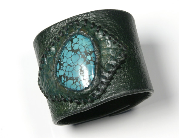 All leather cuffs may be custom ordered in different widths, colors and textures. Availability of different semiprecious stones subject to change.