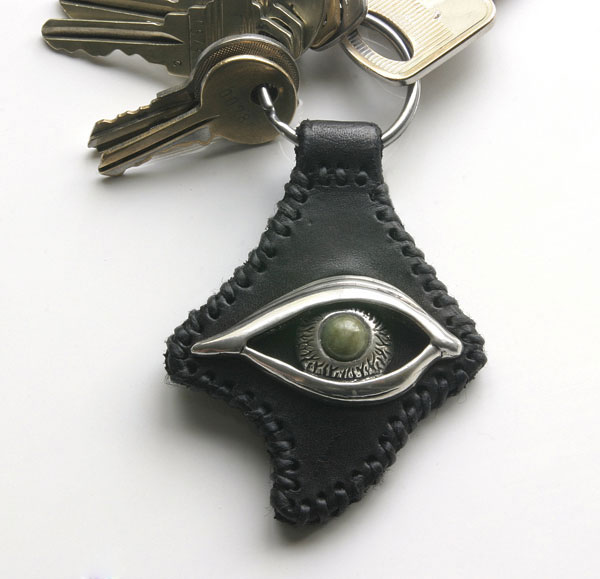 All metal pieces were carved from wax and cast in silver. Small male-female screws are soldered on the back of any components used to attach to the leather for lasting strength.