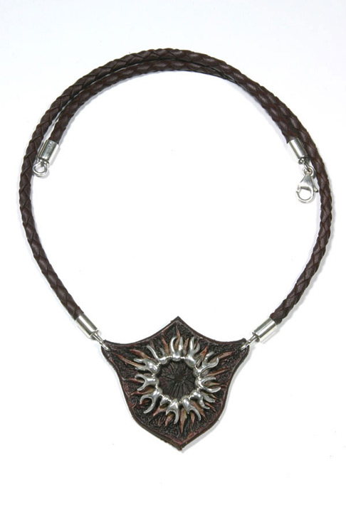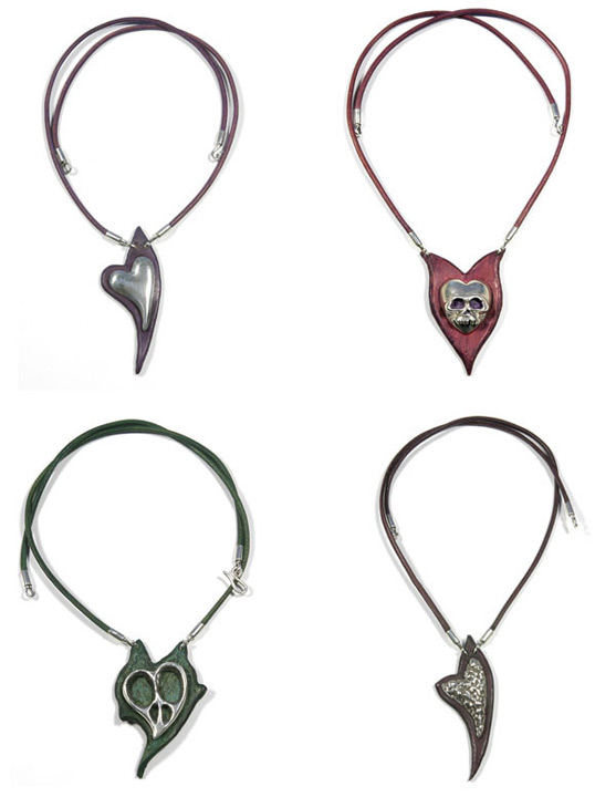 These leather necklaces are handmade with fine 6-7 ounce leather and greek leather cord and braids. Almost every leather necklace is tooled