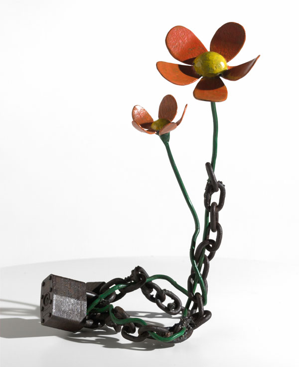Every metal sculpture in this category is made from steel welded or carved with flex shafts. Some have patina or are painted in some sort of way.
