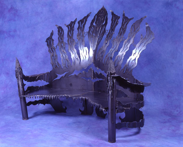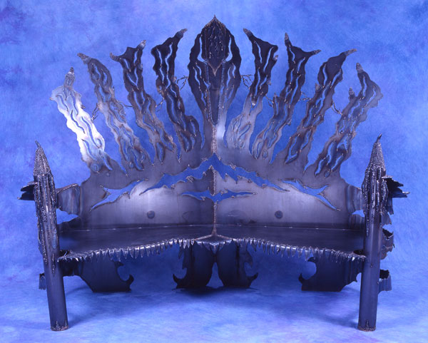 This gothic, metal, sofa was featured in "Batman Forever" on the dark side of the set of Harvey Two Face. Played by Tommy Lee Jones.