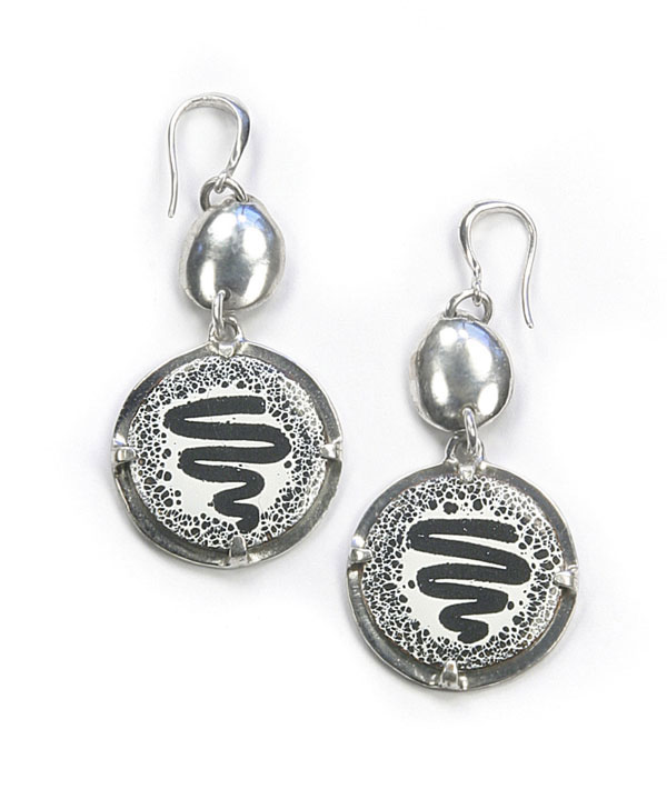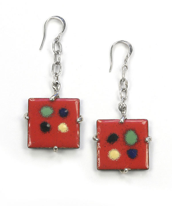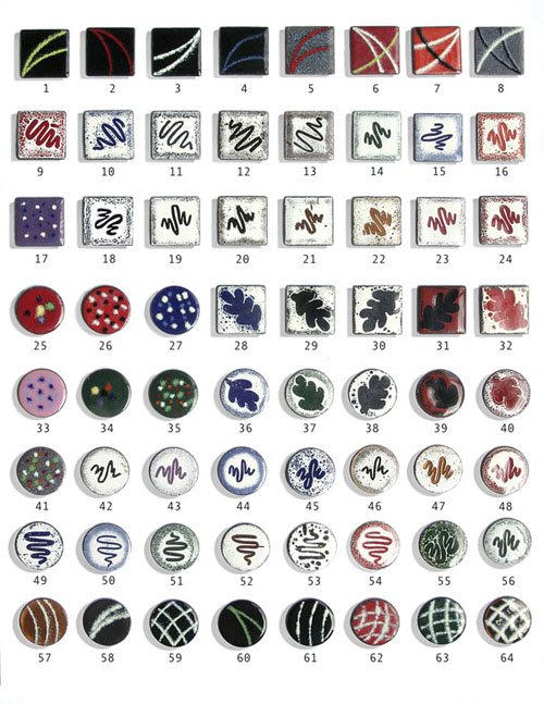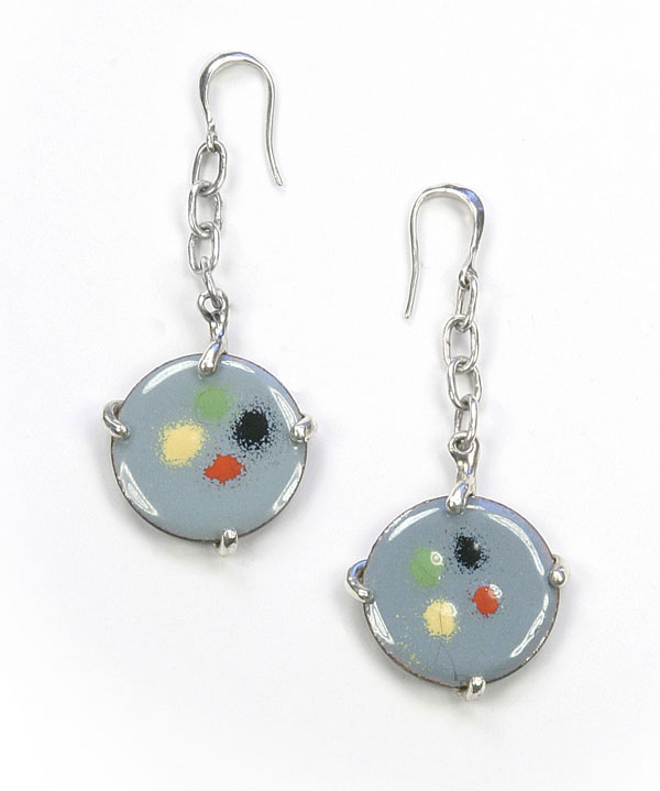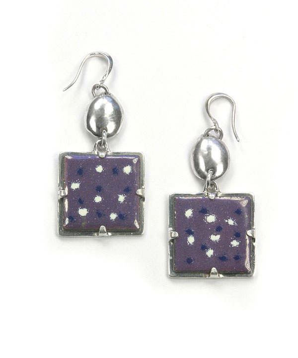 I created this silver line of jewelry together with enamels from the early 1940's. The enamels had earring screw backs and cuff link hooks on the back. I removed them and designed this jewelry to set the enamels in. The line is called “Timeless”. The enamels were made by Johnny Lombardo, a painter and jeweler who lived in New York during that time period. He dated my grandmother. She had a jewelry store in Greenwich Village for over 40 years. From which I inherited all these unique vintage pieces. I have over 3,300 enamels the size of a penny. Some are circular and some are square. There are 2 lists of numbered enamels above with a limited number of each design. They are handmade and vary from one to another. You would then choose the enamels you want in each piece.