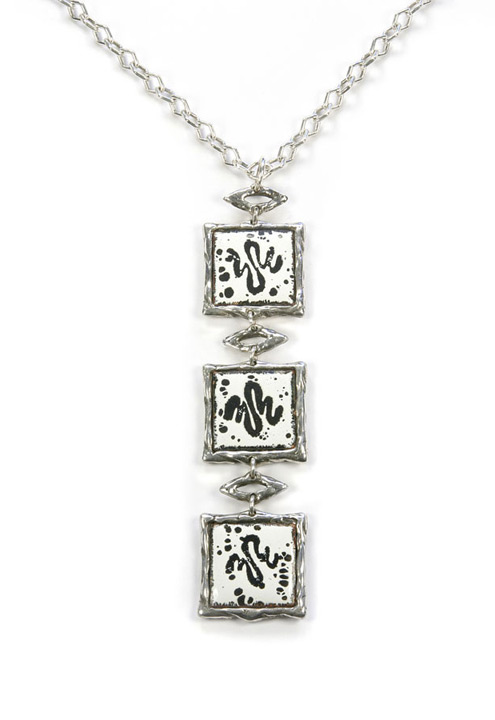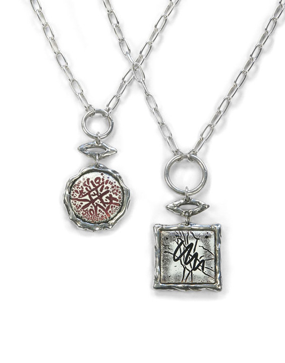 I created this silver line of jewelry together with enamels from the early 1940's. The enamels had earring screw backs and cuff link hooks on the back. I removed them and designed this jewelry to set the enamels in. The line is called “Timeless”. The enamels were made by Johnny Lombardo, a painter and jeweler who lived in New York during that time period. He dated my grandmother. She had a jewelry store in Greenwich Village for over 40 years. From which I inherited all these unique vintage pieces. I have over 3,300 enamels the size of a penny. Some are circular and some are square. There are 2 lists of numbered enamels above with a limited number of each design. They are handmade and vary from one to another. You would then choose the enamels you want in each piece.